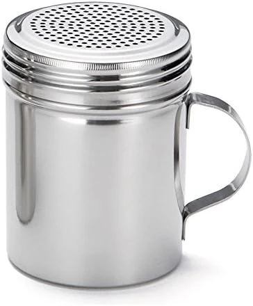 - With a lid that consists of multiple holes, this tool can dispense nearly any type of powder when in use, such as flour, sugar and a variety of spices