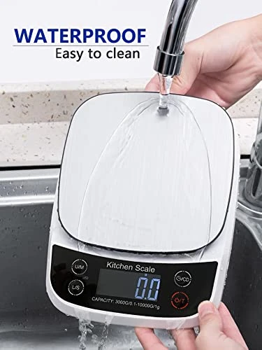 - [ WATERPROOF SCALE ] Our kitchen scale is waterproof and equipped with stainless steel platform so that you can wipe off or rinse any spills and food residue, extremely easy to clean.