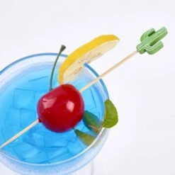 Cocktail Picks Handmade Bamboo Toothpicks 100pcs 4.7” In Green Cacti
