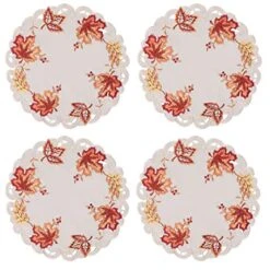 Set Of 4 Fall, Autumn Or Thanksgiving Holiday Table Doilies Place-mats, Round 16 Inch