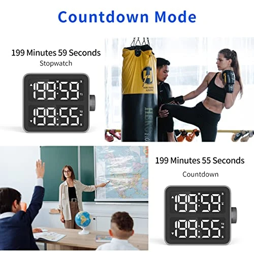 - 【Time Management & Memory】Counting down from 199 minutes 55 seconds to zero, or as a stopwatch count up from 0 to 199:59. It memorize your last countdown time, when it ends, you can press any button to recall the last setting