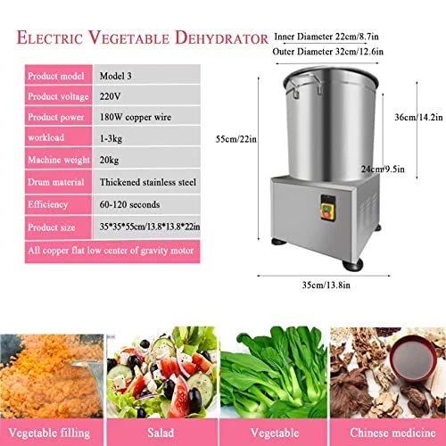 - 【Commercial Large Capacity】: No fixation, efficient dehydration, 0-10L(3kg) of vegetables per minute, fast dehydration without damaging vegetables.