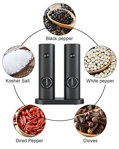 - [Easy Operation]: Pressing the button triggers the automatic grinding of black pepper or salt as you like.Just watch it quietly and simply wait for the meal flavor to be elevated.