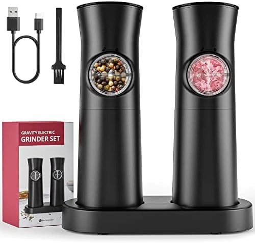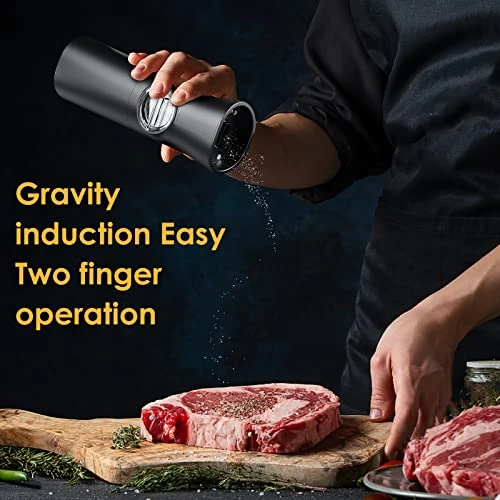 - ใAdjust it to your desired Grinding Coarseness.ใElectric pepper grinder use a high-quality ceramic rotor to grinds spices finer and more stable. Turn the knob at the head of the salt grinder to set the coarseness you want, and easily control the grinding of spices from coarse to superfine. Great for grinding sea salt, black pepper, white pepper and other spices.