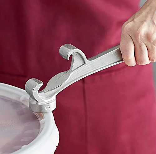 - Versitile Use: Wether you in the food service industry, construction, brewer or DIY this bucket opener will easily pry your lids open. The reverse end offers a hammer head to help shut your containers back closed.