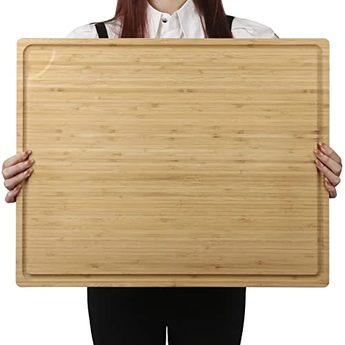 - NO MESS WHEN CUTTING: Front surrounded built-in juice groove is close to the edge to maximize the cutting area while perfectly catch excess liquids without overflow to the countertop, At the same time, the back is flat with handles, making it a great choice as a cheeseboard.