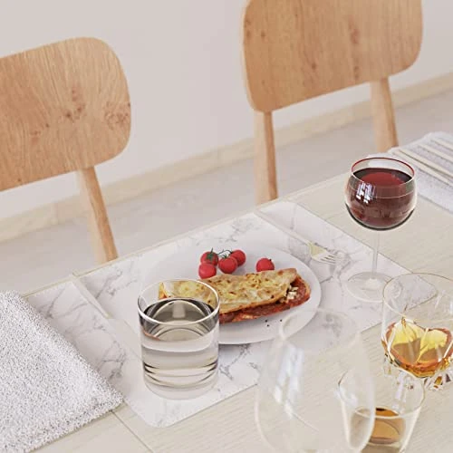 - ⭐ LARGE SIZE & CLASSIC DESIGN –Our Placemat’s size is 17.5 x 12.5 IN – Suitable for all kinds of kitchen dining table and glass table. The simple white marble pattern of our PU leather placemats can blend perfectly with your interior and add a touch of elegance to your home.