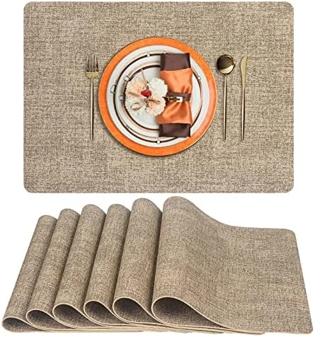- 🏆 DUAL-SIDED & WIDE APPLICATION – Our placemats are made of 100% artificial leather polyester. Exquisite and elegant leather placemats, exquisite workmanship, strong and durable, can be used for a long time. The reversible kitchen table mat allow you turn to another side when one side gets shabby. Widely used in home, kitchen rooms, restaurants and hotels.