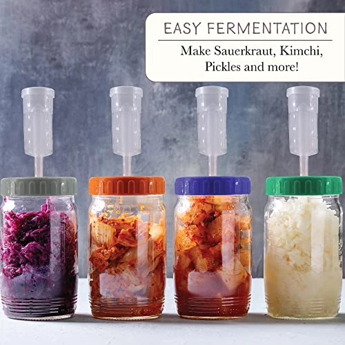 Fermentation Lids Set Of 4 – Fermentation Kit For Wide Mouth Mason Jars, Sauerkraut, Airlocks For Fermenting Lids, Air Lock Fermenter Burp Lids, Home Kimchi Kit