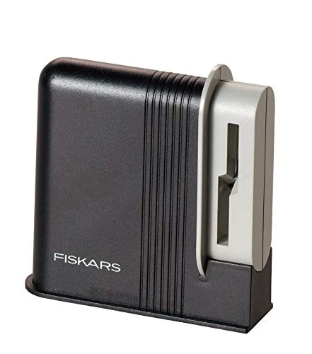 - Contents: 1x Fiskars Clip-Sharp Scissors Sharpener, Functional Form, Dimensions: length: 4 cm, Weight: 75 g, Material: synthetic material, Colour: black/grey, 1000812