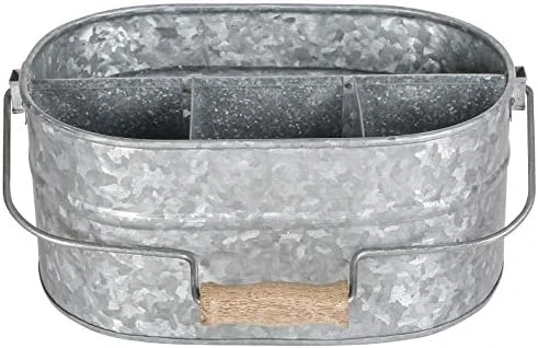 - GREAT IDEA : Use this shiny metal caddy for summer pool parties, picnics, brunches, wedding receptions, and other fun occasions. The Galvanized Metal Utensil Caddy featuring three small compartments and a large compartment. This metal utensil holder is perfect for organizing utensils, napkins, condiments, and other party items. Pair this utensil organizer with other metal decorations and your favorite colors for a picture-perfect afternoon or evening party