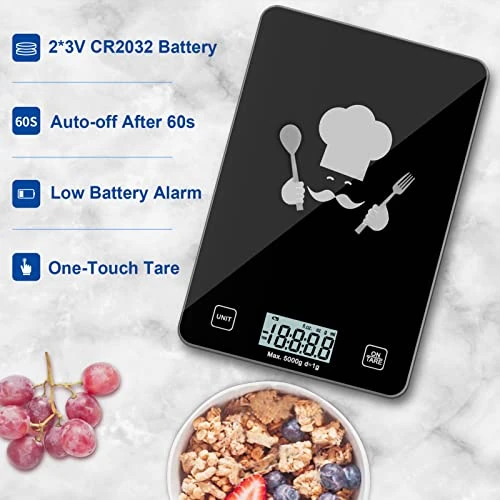 - 【Power Supply】This kitchen scale requires 1 CR2032 batteries to supply power (Battery Included) . Energy-saving and easy to operate. It will auto-off if it is not operated for 60 seconds or press 2s to manually kitchen scale off it. Low power consumption, High energy and environmental protection.