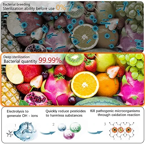- 🍎【 THE BEST CHOICE FOR PURIFIERS 】: our fruit cleaning purifiers are more powerful than their counterparts and have a more pronounced purification effect! Fruit vegetable cleaning machine for fruits, seafood, meat, vegetables, dinner plates, etc. Can be used in a variety of working environments! The food cleaner can quickly clean food in 10mins.
