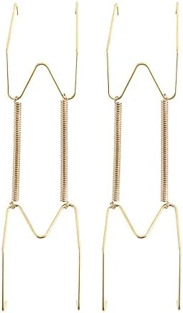 - These plate hangers are almost invisible from the front, and the extendable length of the spring can hold the plate firmly without worrying about it slipping out.