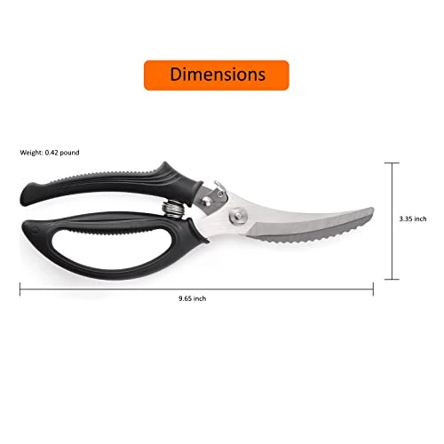 - 🐟 SAFETY: With safety in mind this kitchen shears is design with on handed operation safety lock. The ultrasharp stainless steel blades are designed with anti-slip serrated blades which provides better grip to allow for a firm and secure grip with precise cutting every time.
