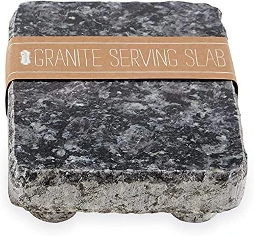- The serving stone measures 8″ L x 6″ W x 2″ H.