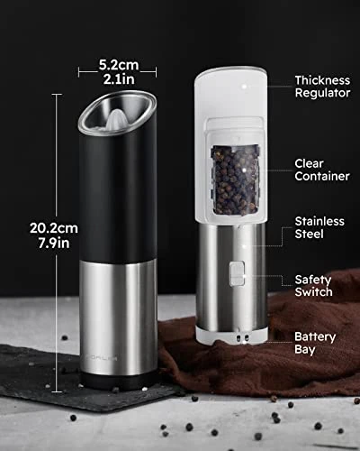 - 👍[Grind Faster and Effortlessly]: This innovative kitchen gadget can grind up to 0.2 oz of salt or pepper in just 1 minute, twice as fast as other grinders on the market, saving you valuable time and effort in the kitchen. Its sleek and easy-to-use design allows for quick and hassle-free grinding, while its effortless cleaning process makes it a must-have addition to any kitchen. Perfect for cooking enthusiasts and entertainers alike, it’s the ultimate kitchen tool that adds flavor and convenience to your daily routine.