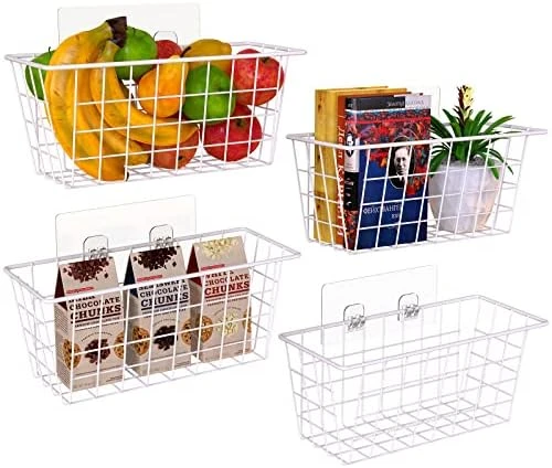 - ๐๐๐๐ ๐๐ ๐๐๐ – Open wire design allows you to see whatโs inside the wire basket, which means you can easily find your snacks, toys, tools or whatever you need. Comes with 2 wire baskets and 2 adhesive strips.
