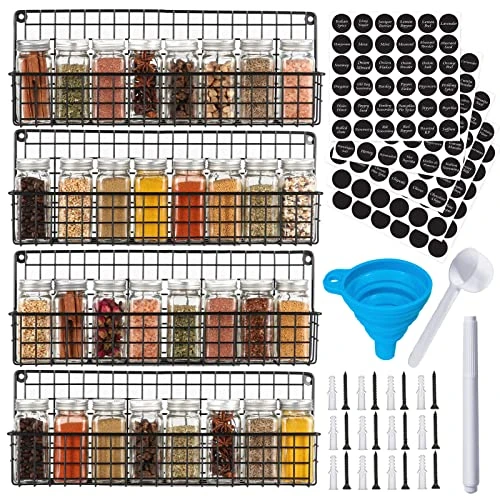 - Versatile Spice Storage: With 4 single wall spice racks and jars, mount them on your wall, inside your pantry, or cabinet or closet door; Experience the choice according to your needs with these space saving kitchen spice racks.