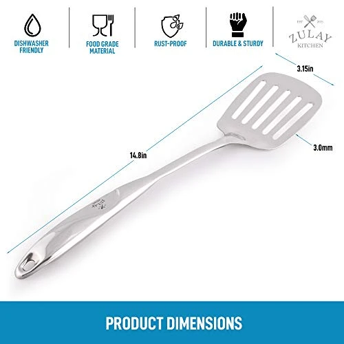 - NO HASSLE, ZULAY GUARANTEE: We love and take pride in our Stainless Steel Slotted Turner and we back this up with a lifetime guarantee. Have the confidence that this product will last, if there are ever any issues, just contact us and we will make it right. Order now and be assured that this product will live up to your expectations, guaranteed. If it does not, we got you covered. Chances are, you will never need to reach out!