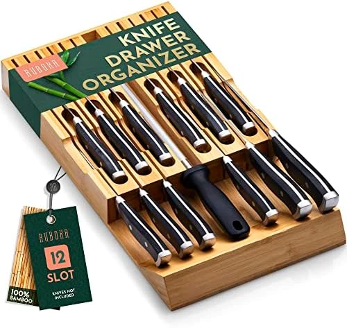 - MODERN BAMBOO – Crafted of a 100% authentic bamboo with a smooth finish, the knives set organizer is supremely durable, eco-friendly, and adds a modern, aesthetic touch to your drawer.