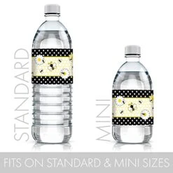 Black And Gold 65th Birthday Party Water Bottle Labels – 24 Stickers