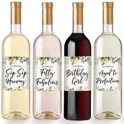 Printed Party 50th Birthday Wine Bottle Labels, Greenery, Set Of 6