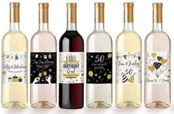Printed Party 50th Birthday Wine Bottle Labels, Black And Gold, Set Of 6