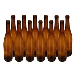 750ml Glass Bordeaux Wine Bottle Flat-Bottomed Cork Finish – Case Of 12 – Brandy Color