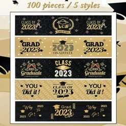 100 50th Anniversary Black With Gold Party Water Bottle Labels 8″x2″
