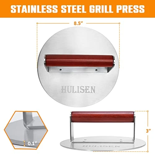 Be the first to review “HULISEN Stainless Steel Bacon Press, 8.5-Inch Round Heavy-Duty Grill Press With Wood Handle, Non Stick Large Burger Press, Griddle BBQ Accessories For Steak Weight, Panini Sandwich” Cancel reply