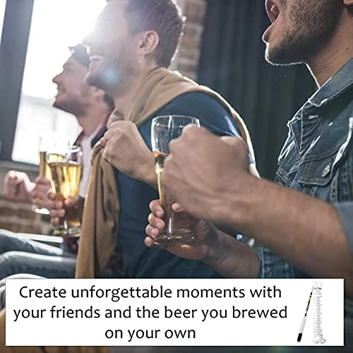 - THE ULTIMATE SET TO MASTER GRAVITY TESTING → We assembled all the essential components: in addition to the triple scale hydrometer, we added a graduated cylinder testing jar, making sure you have an appropriate container to test your creations. Also you will find clear, step-by-step instructions with a conversion chart right in the box. Finally, we added a bottom-reacher cleaning brush and microfiber cloth to the set to clean your hydrometer, test tube beaker, and empty beer bottles
