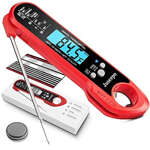 - 【EASY READOUT AND WATERPROOF】The large dial with bright blue backlight mean you can always read the temperature, whether you are grilling in the dark or baking in your brightly lit kitchen.IP67 grade Waterproof, Every gap in the thermometer has a waterproof treatment means Jsueepo meat thermometer to be washed under running water without fear!