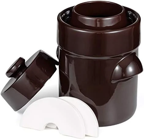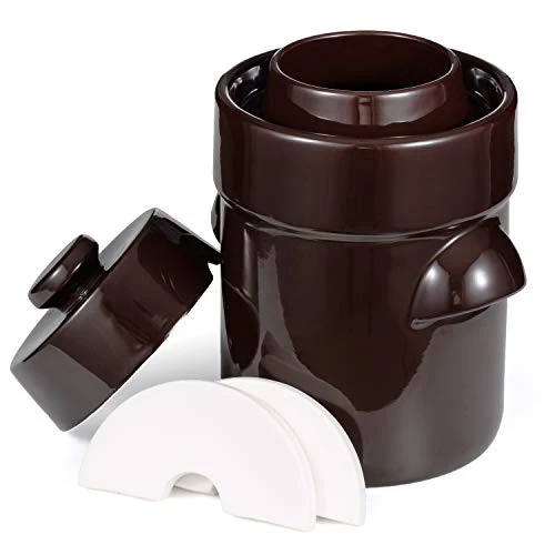 Jillmo Fermentation Crock, 3 Liter Sauerkraut Crock with Weights, Brown