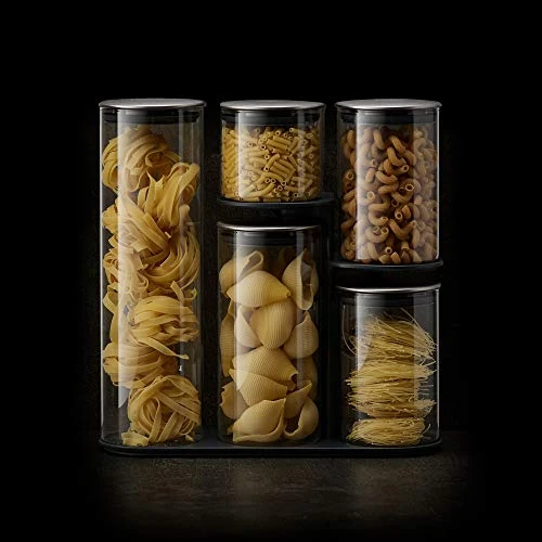 - Lids with airtight silicone seals and stainless-steel finish; for Dry food storage only