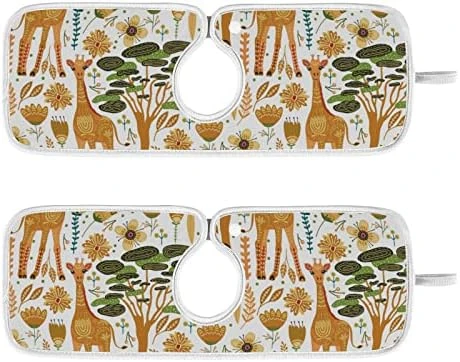 Kcldeci 2 Pack Faucet Mat Splash Guard For Kitchen Sink,Cartoon Giraffe African Animals 23×5 Inch Faucet Handle Drip Catcher Tray Absorbent Mat Fast Dry Mat For Kitchen, Bathroom
