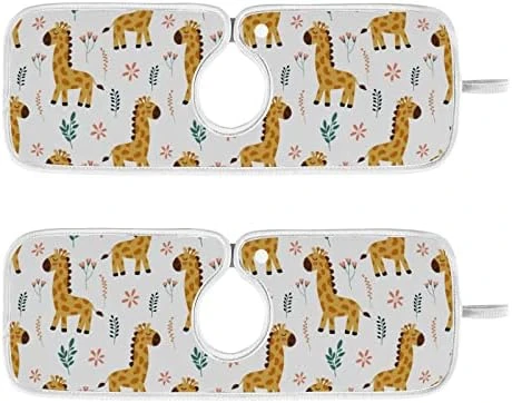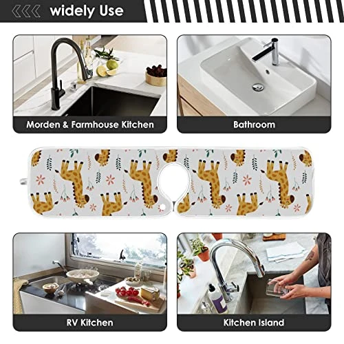 Kcldeci 2 Pack Faucet Mat Splash Guard For Kitchen Sink,Cute Giraffe Leaves And Flowers 14×5 Inch Faucet Handle Drip Catcher Tray Absorbent Mat Fast Dry Mat For Kitchen, Bathroom