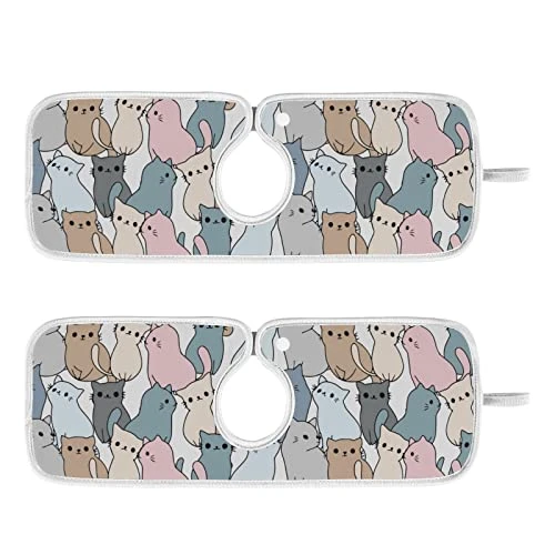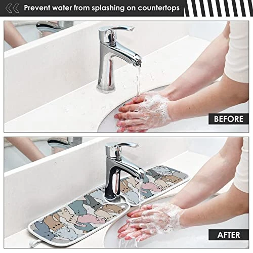 Kcldeci 2 Pack Faucet Mat Splash Guard For Kitchen Sink,Cute Kitty Kitten Cat 14×5 Inch Faucet Handle Drip Catcher Tray Absorbent Mat Fast Dry Mat For Kitchen, Bathroom