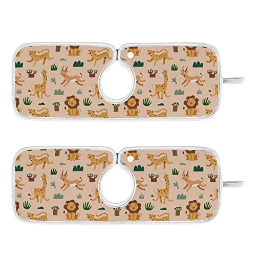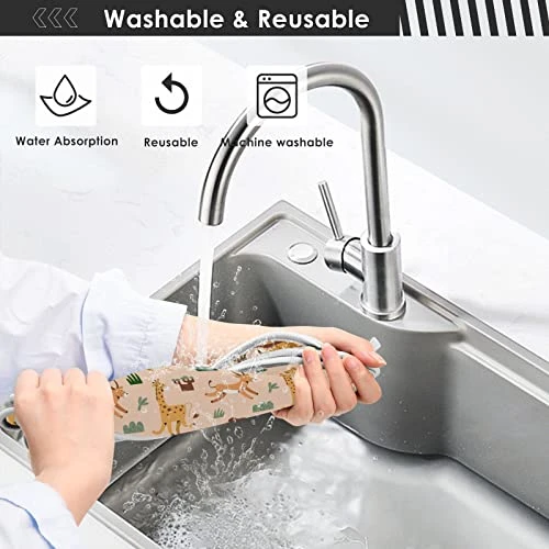 Kcldeci 2 Pack Faucet Mat Splash Guard For Kitchen Sink,Felines Lion Jaguar Funny Giraffe 30×5 Inch Faucet Handle Drip Catcher Tray Absorbent Mat Fast Dry Mat For Kitchen, Bathroom