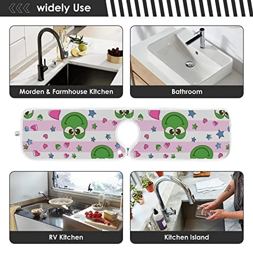 Kcldeci 2 Pack Faucet Mat Splash Guard For Kitchen Sink,Frog Heart Stripe 23×5 Inch Faucet Handle Drip Catcher Tray Absorbent Mat Fast Dry Mat For Kitchen, Bathroom