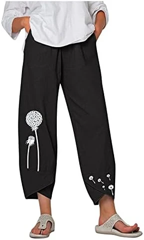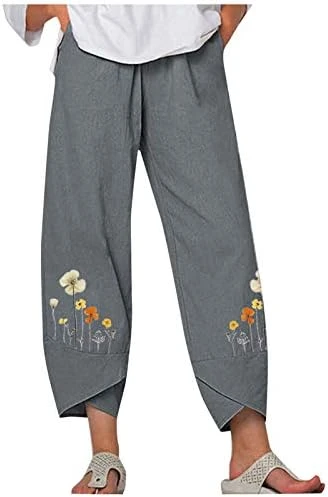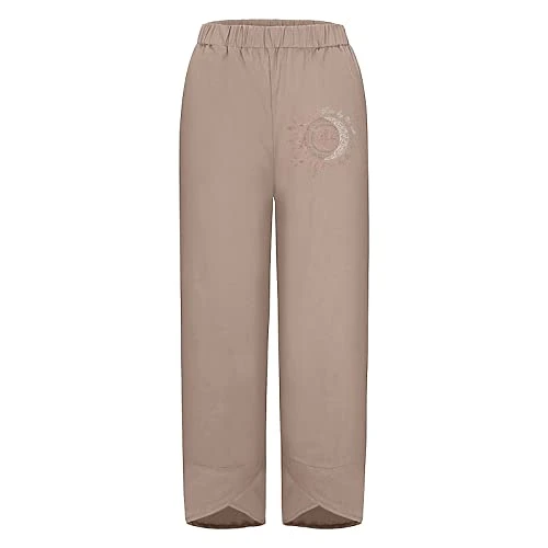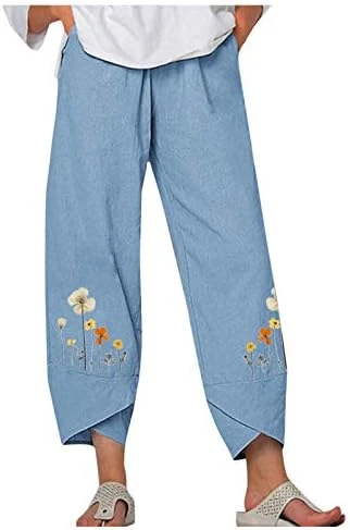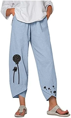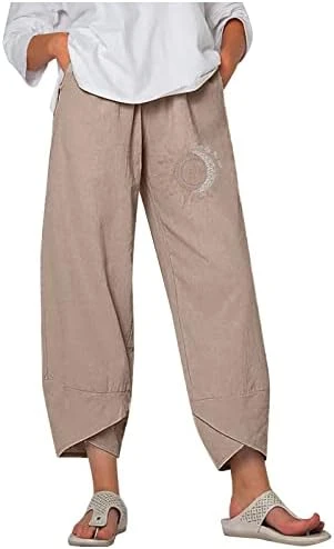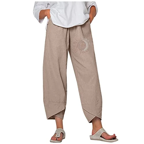 Kingspinner Capri Pants For Women Plus Size Capri Baggy Pants Casual Linen Long Pants Women Palazzo Lounge Pants