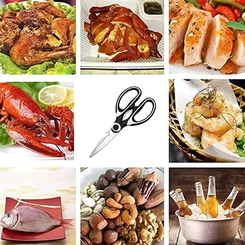 - ✂️Ergonomic Handle Design: These kitchen food scissors have an ergonomic handle shape and a soft handle coating to ensure their stability. Cushioned pads on the grip absorb pressure while cutting.