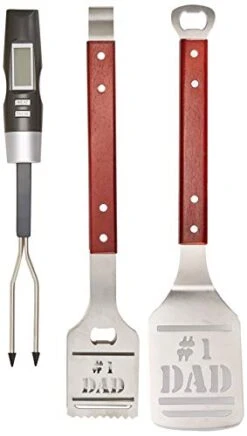BBQ Grill Tools Set Gift For Dad, 4 Piece Set, Number 1 Dad Tongs, Spatula, Digital Thermometer And Case