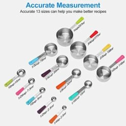 13Pcs Stainless Steel Measuring Cups And Spoons Set (Stainless Steel-Colorful, 8Cup+5Spoons)