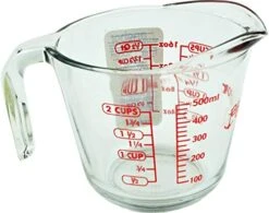 2 Cup (16 Ounce) Glass Measuring Cup, Clear Glass With Red Lettering (Anc-9439)