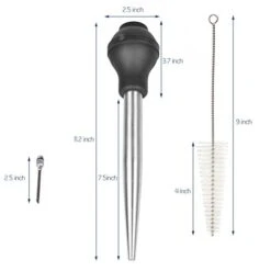 Home Servz Stainless Steel Turkey Baster Syringe And Poultry Lifters Fork Set Of 2,