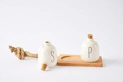 Bistro Basic Ceramic Salt And Pepper Shaker Set With Board, White