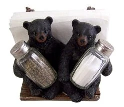 Decorative Side By Side Black Bear Salt And Pepper Shaker Napkin Holder Shakers Included