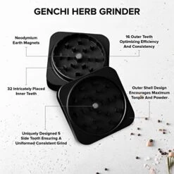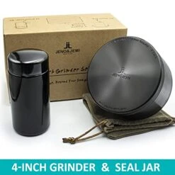 Grinder Set – 4″ Grinder With Aluminum Magnetic Lid UV Seal Glass Jar (Black Set)