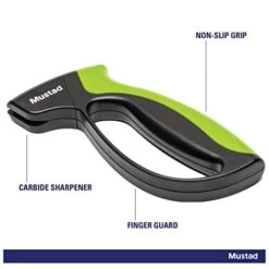 Mustad Knife Sharpener, Ergonomic Handle , Textured Grip, Carbide Sharpening Edges